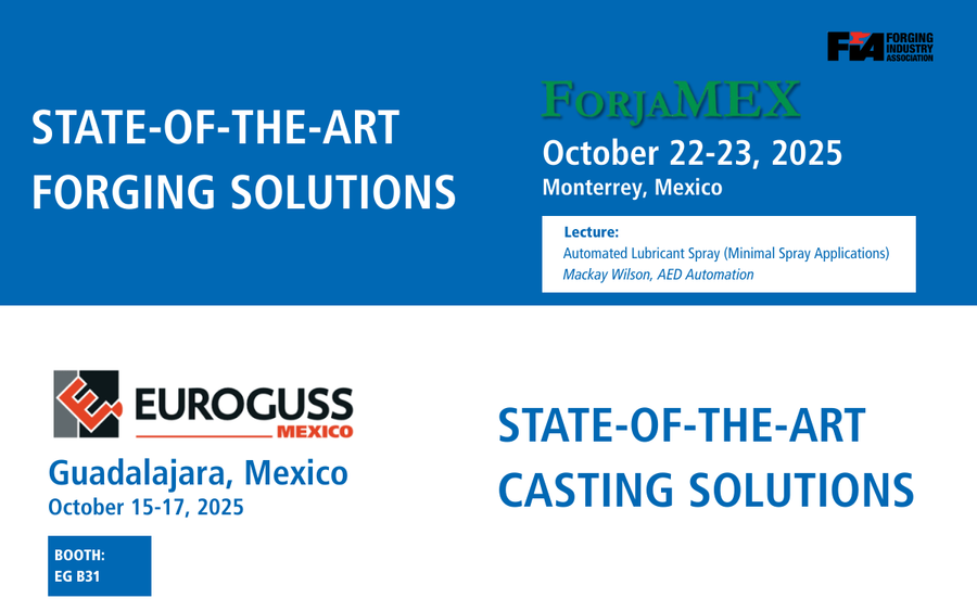 Im Oktober 2025 ist AED Automation gleich auf zwei führenden Fachmessen in Mexiko vertreten und präsentiert dort innovative Lösungen für die Druckguss- und Schmiedeindustrie.