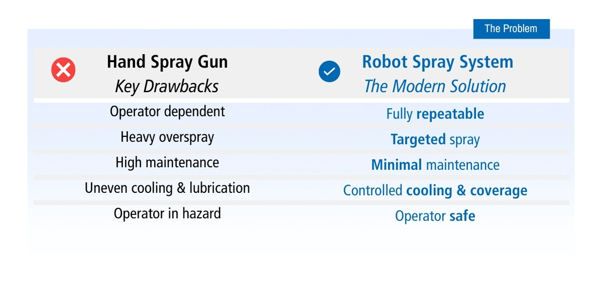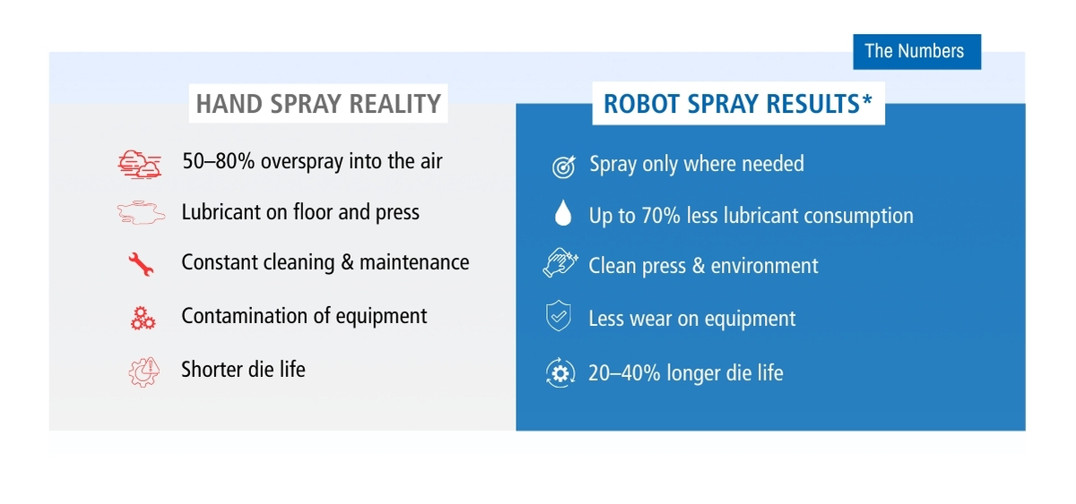 Modern robotic spray systems make it possible to apply lubricant precisely, repeatably, and only where it is needed.